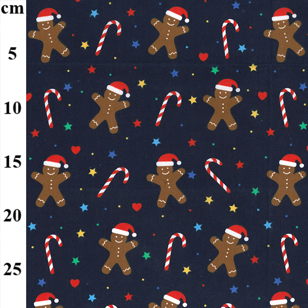 Christmas Polyester Cotton Print Christmas Puddings, Gingerbread Men And Candy Canes