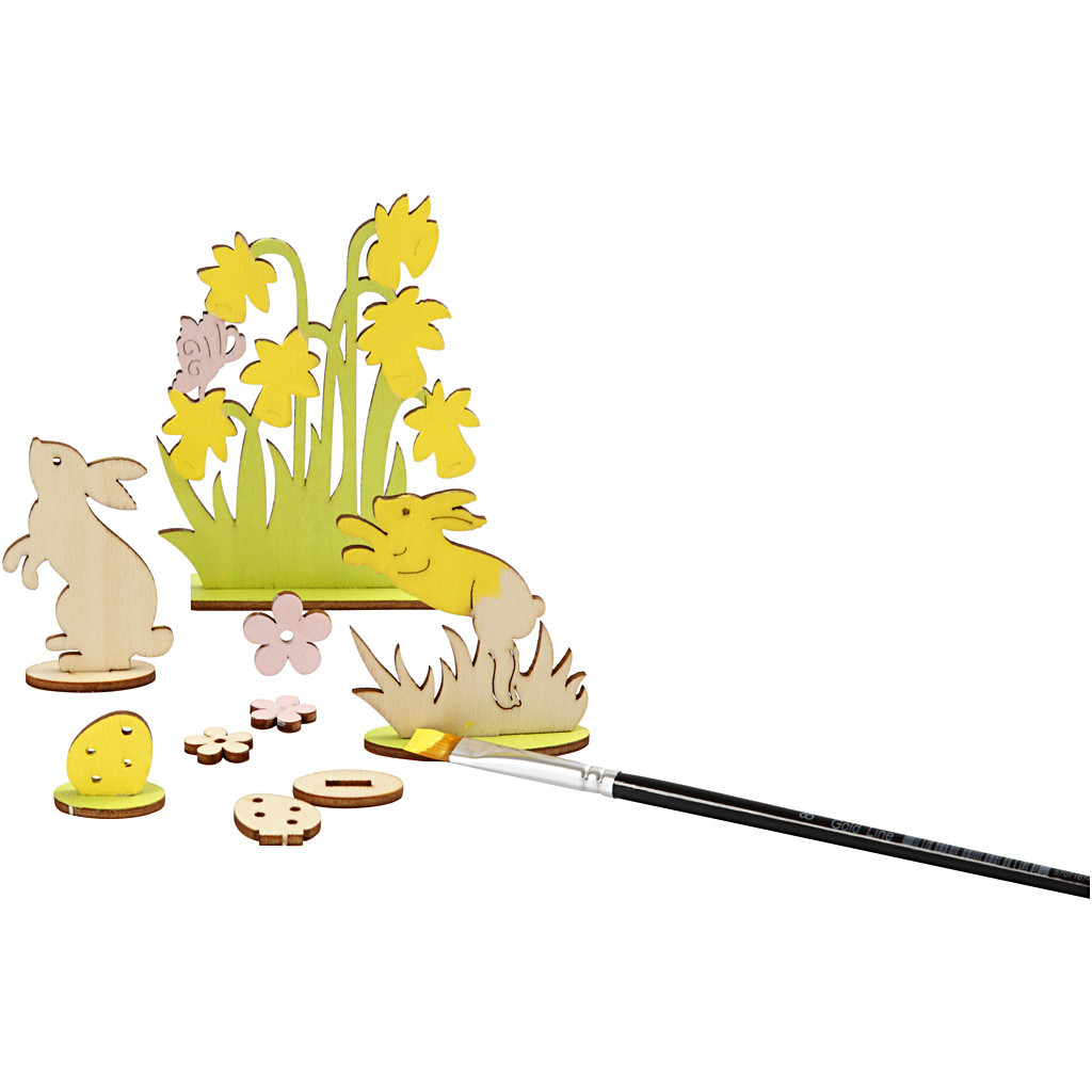 Qty x Self-assembly Figures made of light wood, Hares and Flowers