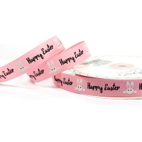 Qty x 16mm Bertie's Bows Pink Polyester Grosgrain Ribbon Bunnies Happy Easter Print