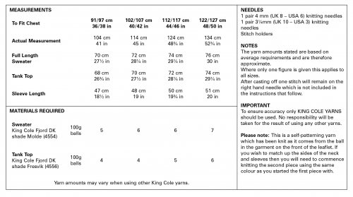 Qty x Mens Sweater & Tank Top Pattern 5651 Knitted in Fjord DK