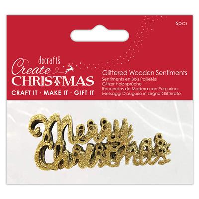 MERRY CHRISTMAS GLITTERED WOODEN SENTIMENTS (6PCS) - GOLD
