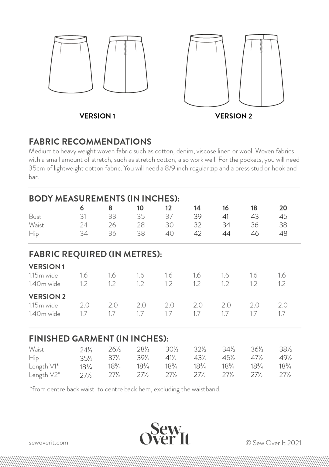 Sew Over It Ava Skirt Sewing Pattern UK sizes 6-20
