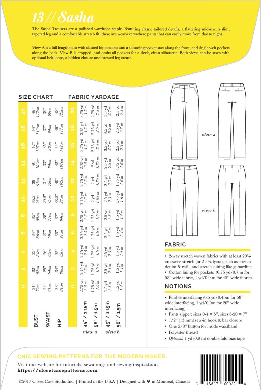 Reference: CLOSETCOREPATTERNS-SASHATROUSERS-CCFP13