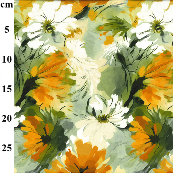 Viscose and Spandex Digital Print-Flowers Orange, Green